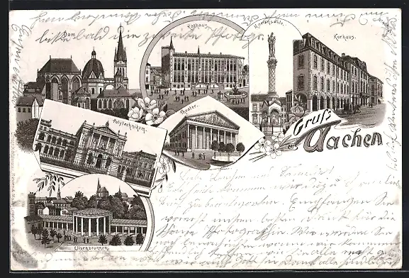 Lithographie Aachen, Kurhaus, Dom, Polytechnikum