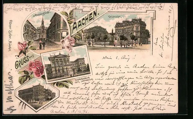 Lithographie Aachen, Marienkirche, Kaiserplatz, Polytechnikum
