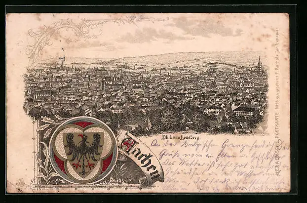 gelaufen 1896, leicht fleckig, Eckknick li. unten & re. oben, sonst guter Zustand