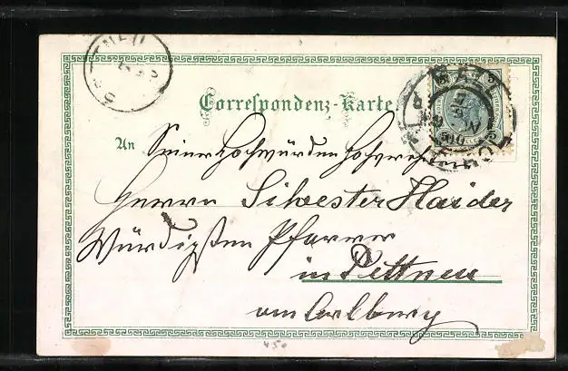 gelaufen 1900, rückseitig Klebe- und Papierreste, guter Zustand