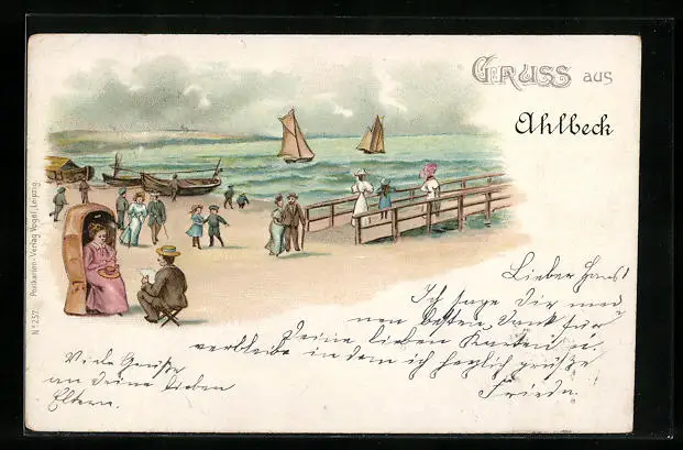 Lithographie Ahlbeck, Strandpartie