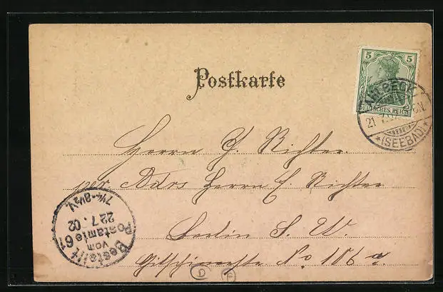 gelaufen 1902, Eckknicke li. oben, guter Zustand