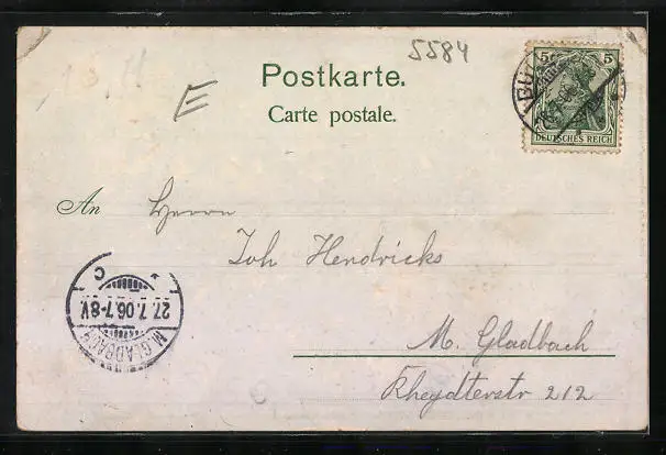 gelaufen 1906, Eckknicke oben, guter Zustand