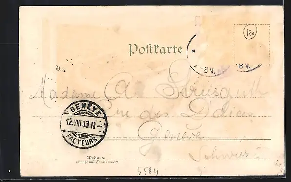 gelaufen 1903, Briefmarke entfernt, rückseitig Oberflächenschaden, guter Zustand