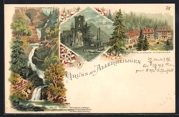 Lithographie Allerheiligen, Ruine, Hotel & Pension Mittenmaier