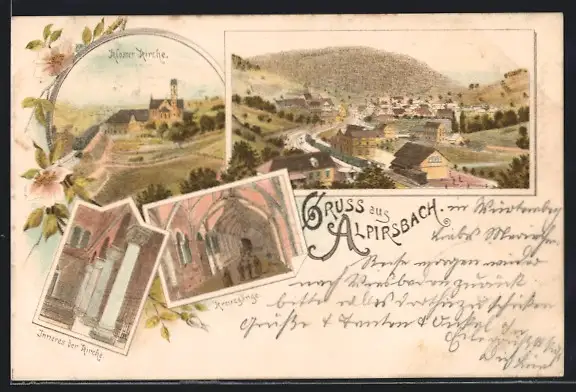Lithographie Alpirsbach, Kloster-Kirche, Innenansicht, Kreuzgänge
