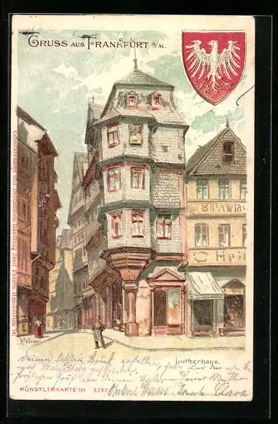 Lithographie Alt-Frankfurt, Lutherhaus, Wappen