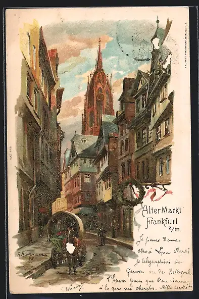 Lithographie Alt-Frankfurt, Strassenpartie am Alten Markt