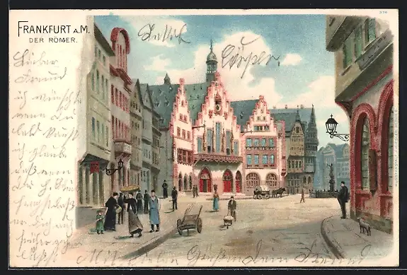 Lithographie Alt-Frankfurt, Strassenpartie am Römer