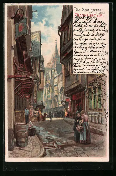 Lithographie Alt-Frankfurt, Strassenpartie der Saalgasse