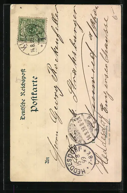 gelaufen 1899, Eckknick oben li., guter Zustand