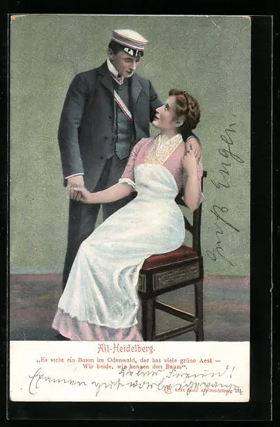 Lithographie Alt-Heidelberg, Student nimmt Frau in den Arm
