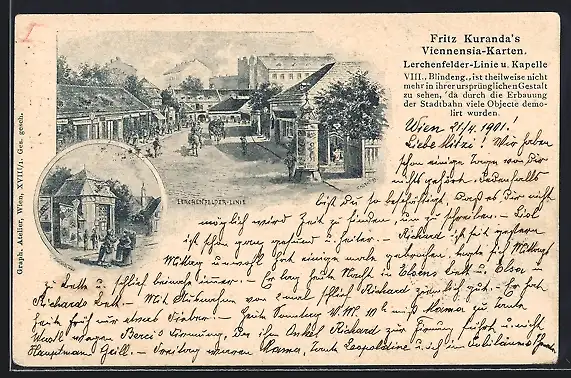 Lithographie Alt-Wien, Lerchenfelder-Linie und Kapelle