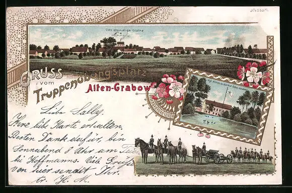 Lithographie Alten-Grabow, Truppenübungsplatz, Soldaten zu Pferd