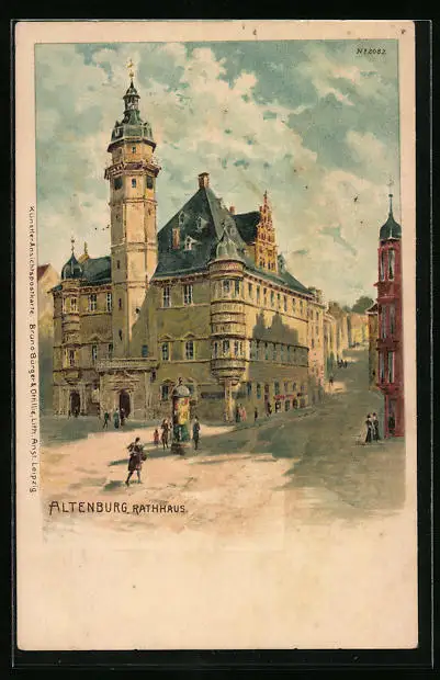 Lithographie Altenburg, Strassenpartie am Rathaus