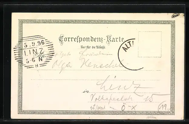 gelaufen 1896, Briefmarke entfernt, guter Zustand
