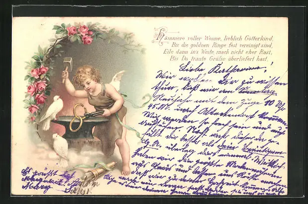 Lithographie Amor schmiedet güldene Ringe