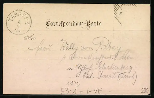 gelaufen 1895, Briefmarke entfernt, guter Zustand