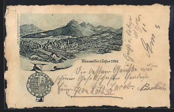 Lithographie Annweiler, Ortsansicht im Jahre 1740