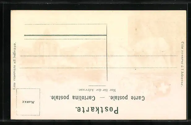 Lithographie Appenzell, Partie an der Kirche, Grüssende Appenzellerin, Wappen