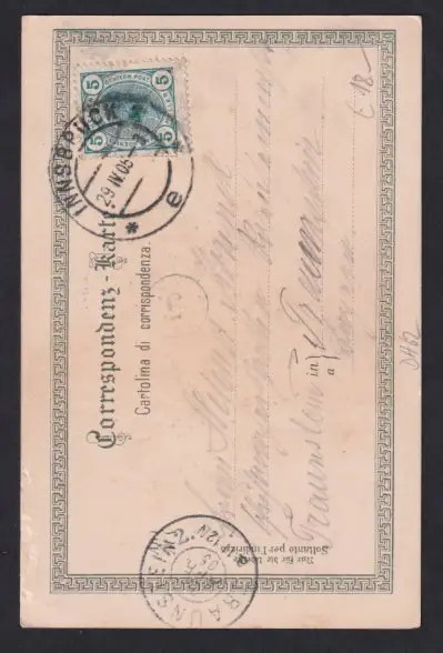 gelaufen 1905, Stempelspur, Eckknick re. oben, guter Zustand