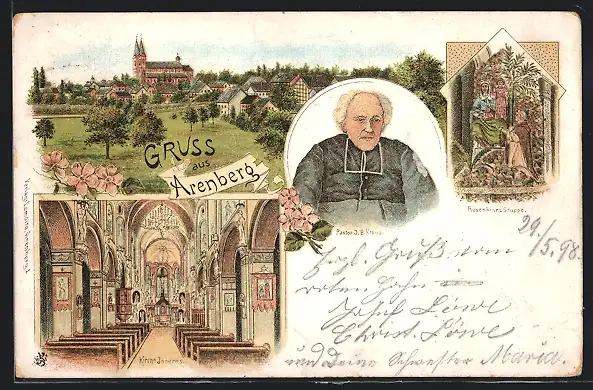 Lithographie Arenberg, Inneres der Kirche, Rosenkranz-Gruppe