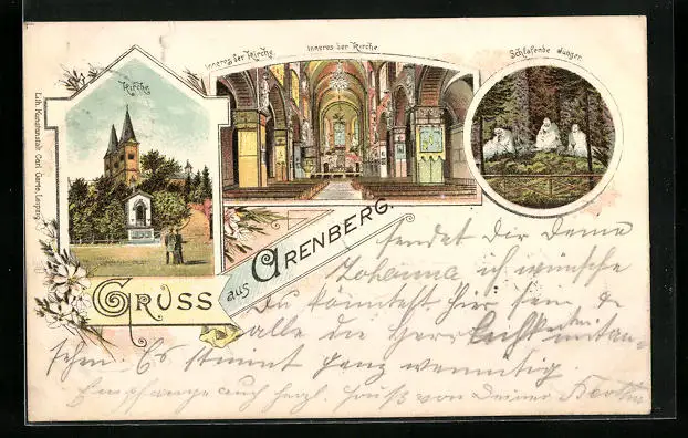 Lithographie Arenberg, Kirche, Innenansicht, Schlafende Jünger