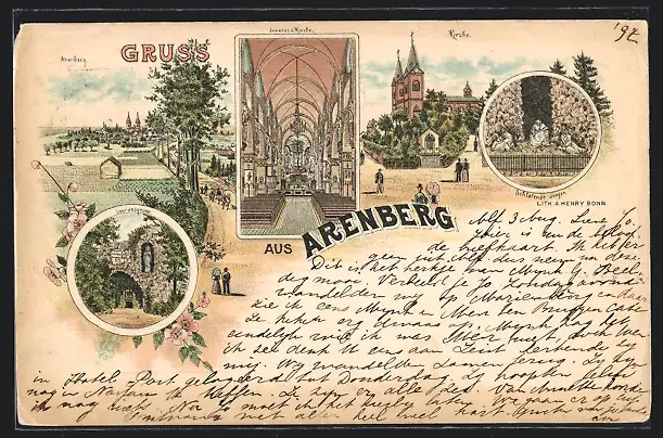 Lithographie Arenberg, Kirche, Innenansicht, Schlafende Jünger