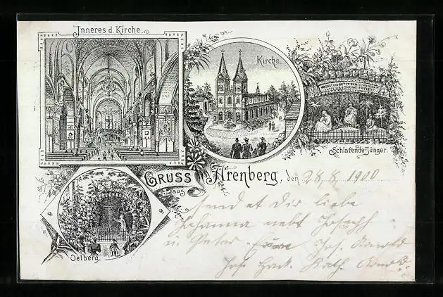 Lithographie Arenberg, Kirche, Inneres der Kirche, Schlafende Jünger, Oelberg