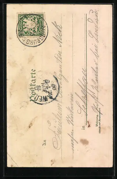 gelaufen 1900, Eckknick rechts unten, guter Zustand