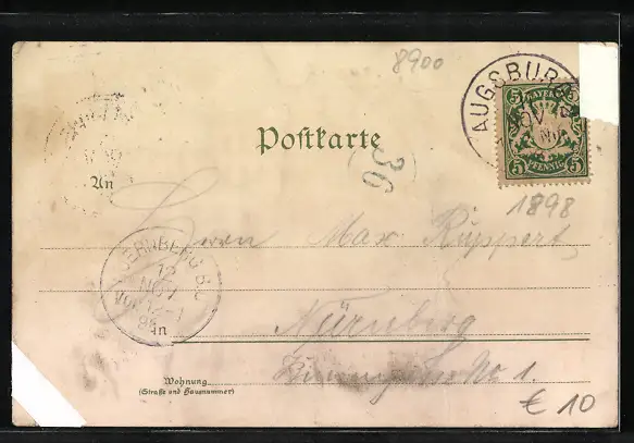 gelaufen 1898, Eckknicke li. oben u. re., rückseitig Klebe- und Papierreste, guter Zustand