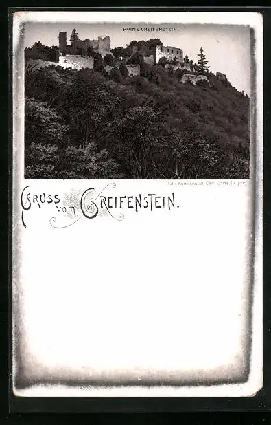 Lithographie Bad Blankenburg, Blick zur Ruine Greifenstein