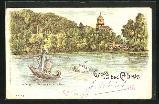 Lithographie Bad Cleve, Lohengrin (Schwanenritter v. Cleve)