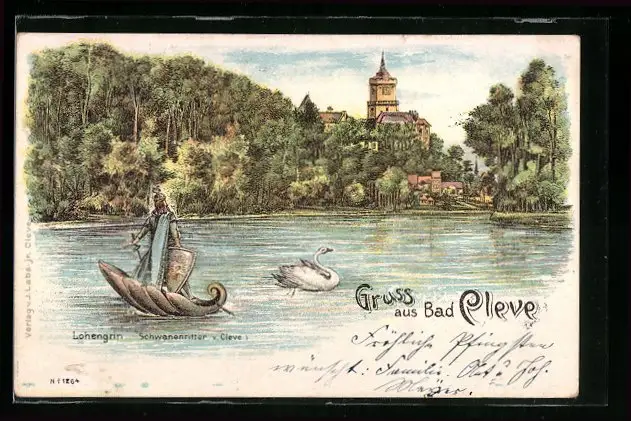 Lithographie Bad Cleve, Lohengrin (Schwanenritter v. Cleve)