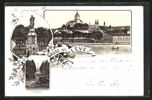Lithographie Bad Cleve, Lohengrindenkmal, Amphitheater, Panorama