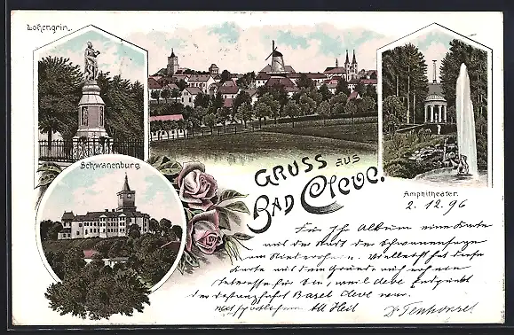 Lithographie Bad Cleve, Schwanenburg, Lohengrin, Amphitheater