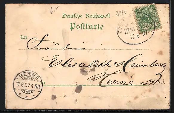 gelaufen 1897, Eckknicke li., guter Zustand