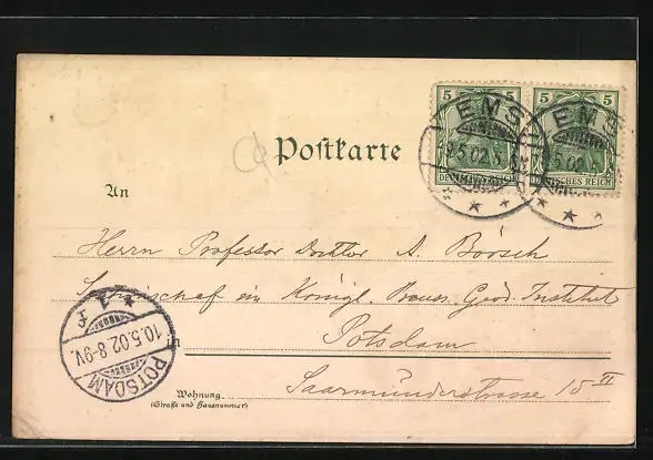 gelaufen 1902, Eckknick unten re., guter Zustand