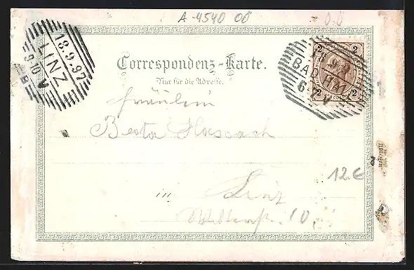 gelaufen 1897, rückseitig Oberflächenschaden, guter Zustand
