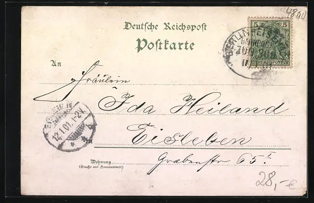 gelaufen 1901, Eckknicke oben, guter Zustand