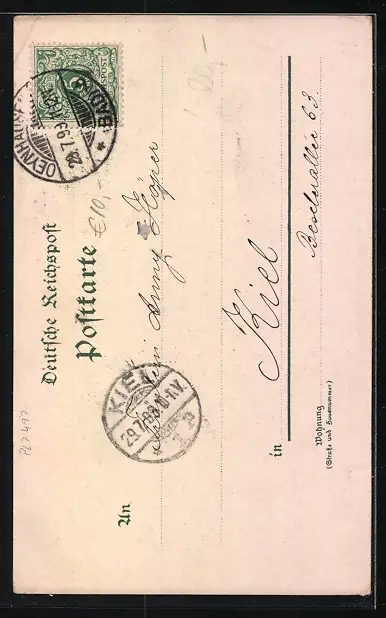 gelaufen 1899, Eckknick re. oben, guter Zustand