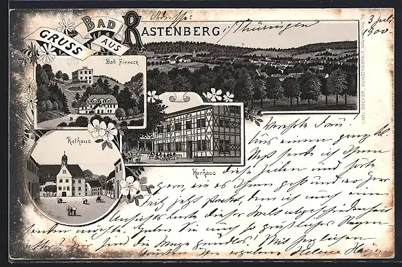 Lithographie Bad Rastenberg, Kurhaus, Rathaus, Bad Finneck