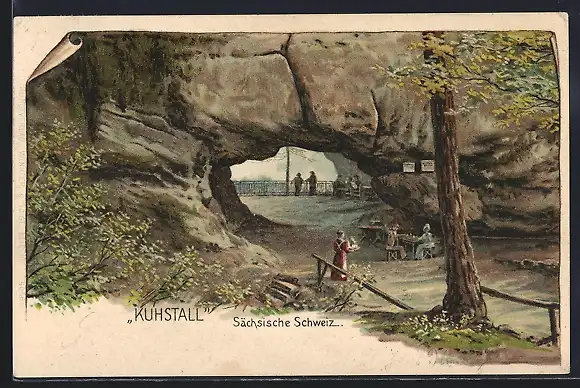 Lithographie Bad Schandau, Felsformation Kuhstall