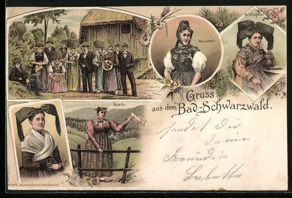 Lithographie Bad-Schwarzwald, Menschen in Badischer Tracht