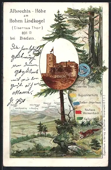 Lithographie Baden, Albrechts Höhe am hohen Lindkogel