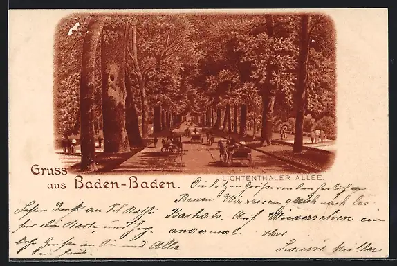 Lithographie Baden-Baden, Lichtenthaler Allee