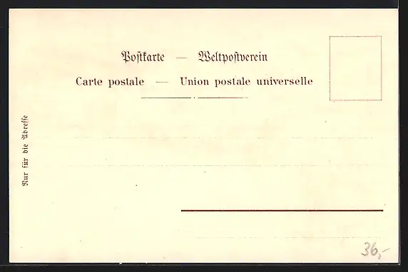 Personenbezogene Daten auf der Rückseite der Karte wurden durch blauen Textmarker unkenntlich gemacht. Die blauen Stellen sind auf die Vorderseite durchgeweicht und wirken sich negativ auf das Postkartenfoto aus