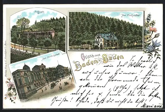 Lithographie Baden-Baden, Trinkhalle, Friedrichsbad
