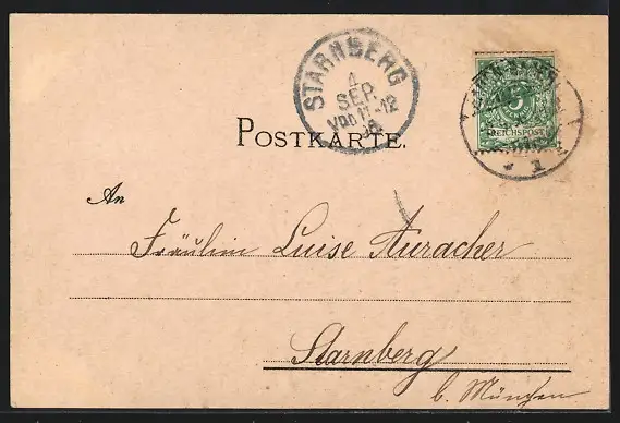 Personenbezogene Daten auf der Rückseite der Karte wurden durch blauen Textmarker unkenntlich gemacht. Die blauen Stellen sind auf die Vorderseite durchgeweicht und wirken sich negativ auf das Postkartenfoto aus