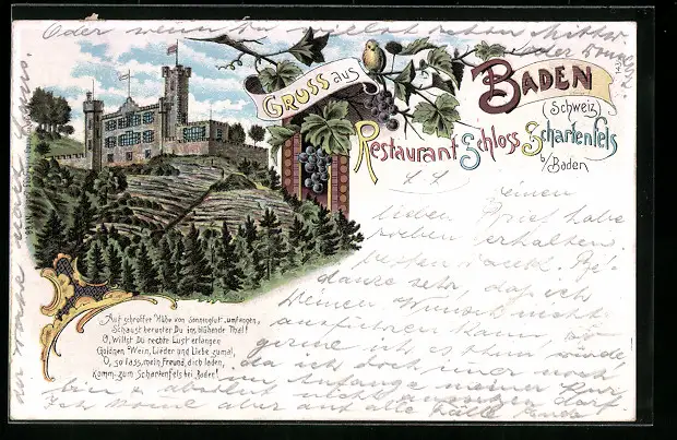 Lithographie Baden, Restaurant Schloss Schartenfels